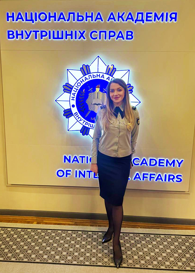 Голова Координаційної ради наукового товариства НАВС – Наталія Симоненко, провідний науковий співробітник відділу організації наукової діяльності, кандидат юридичних наук, доцент, старший лейтенант поліції.