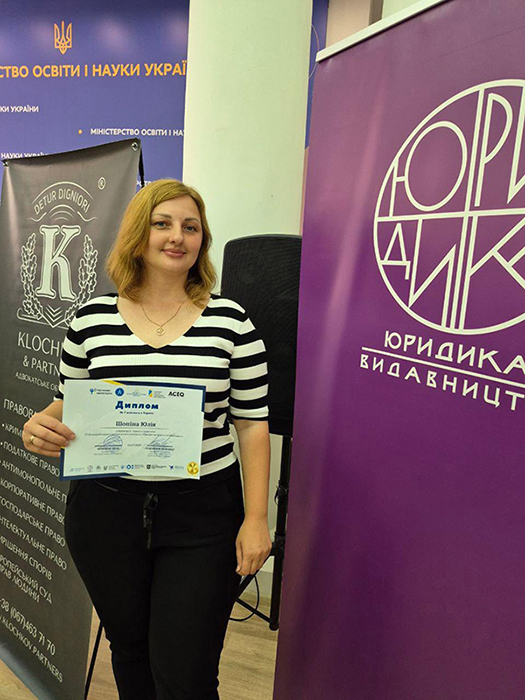 Кароліна Конончук, секретар Ради молодих вчених, викладач кафедри ділової української та іноземних мов навчально-наукового інституту права та психології. |