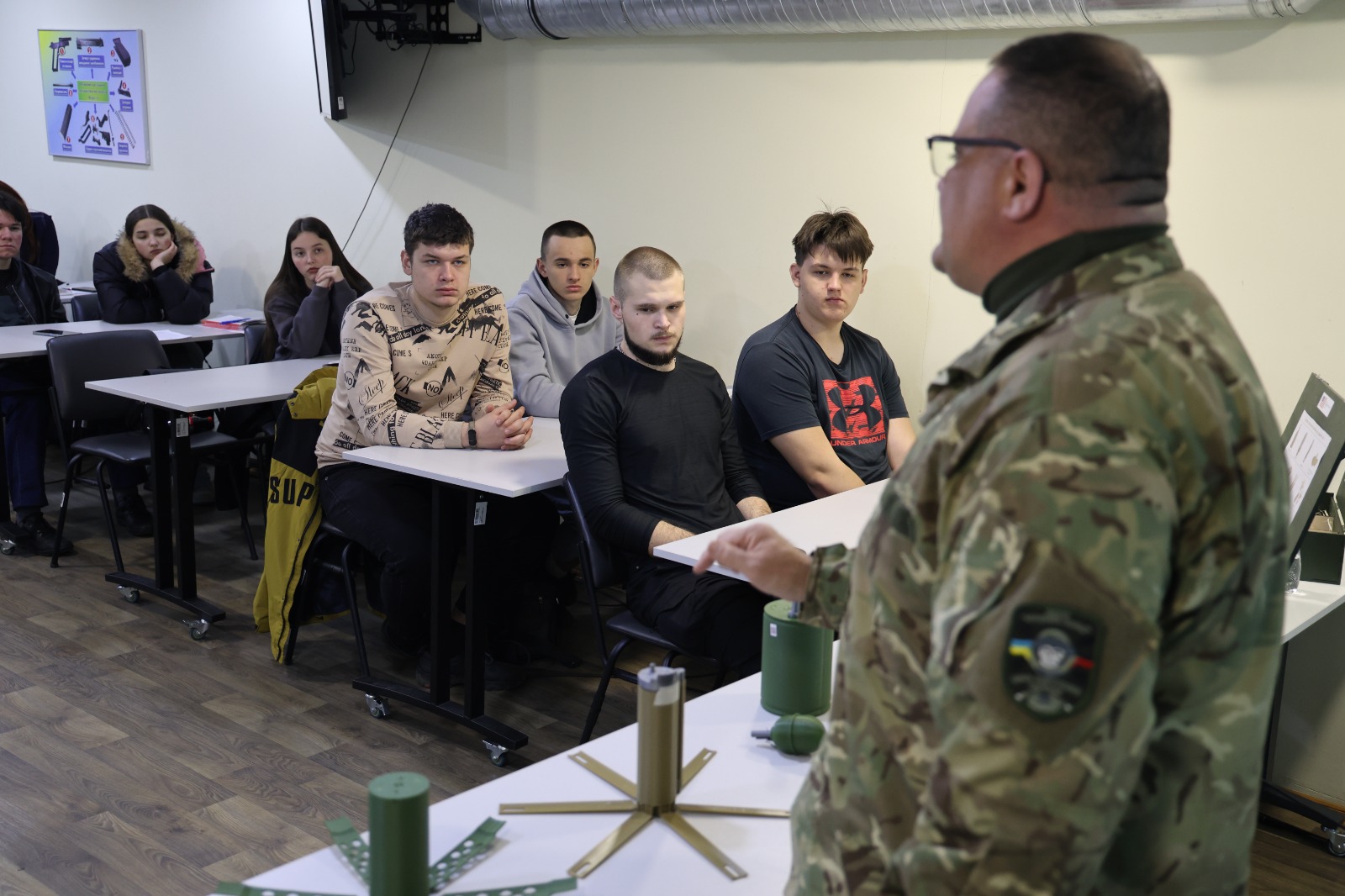 Заняття провели викладач Володимир Краснощок разом з інструктором Максимом Мазуром — ветераном та учасником бойових дій, представники циклу підготовки саперів (Центр розмінування) Київського центру первинної професійної підготовки «Академія поліції».