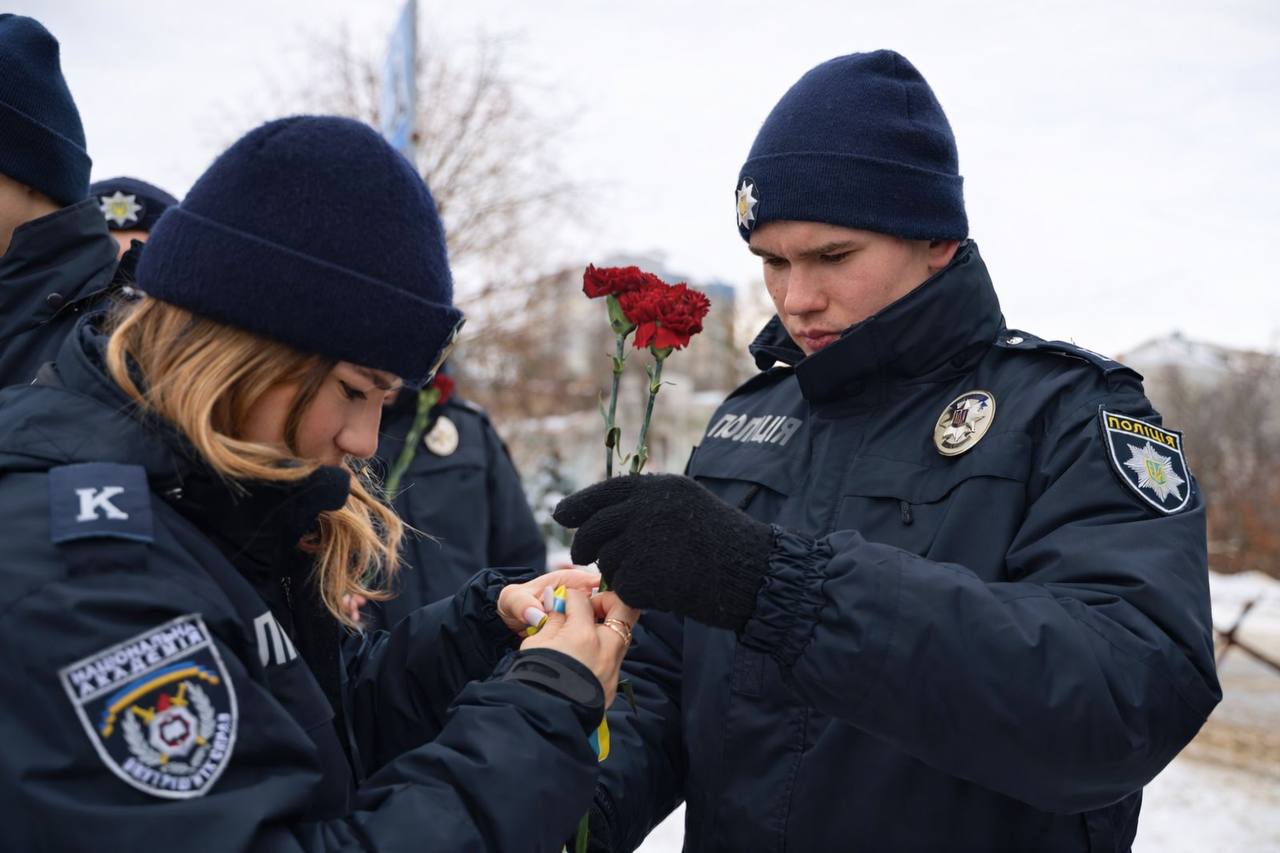 Курсанти НАВС взяли участь у церемонії покладання квітів на Алеї Героїв Небесної Сотні в День пам'яті Героїв Небесної Сотні.