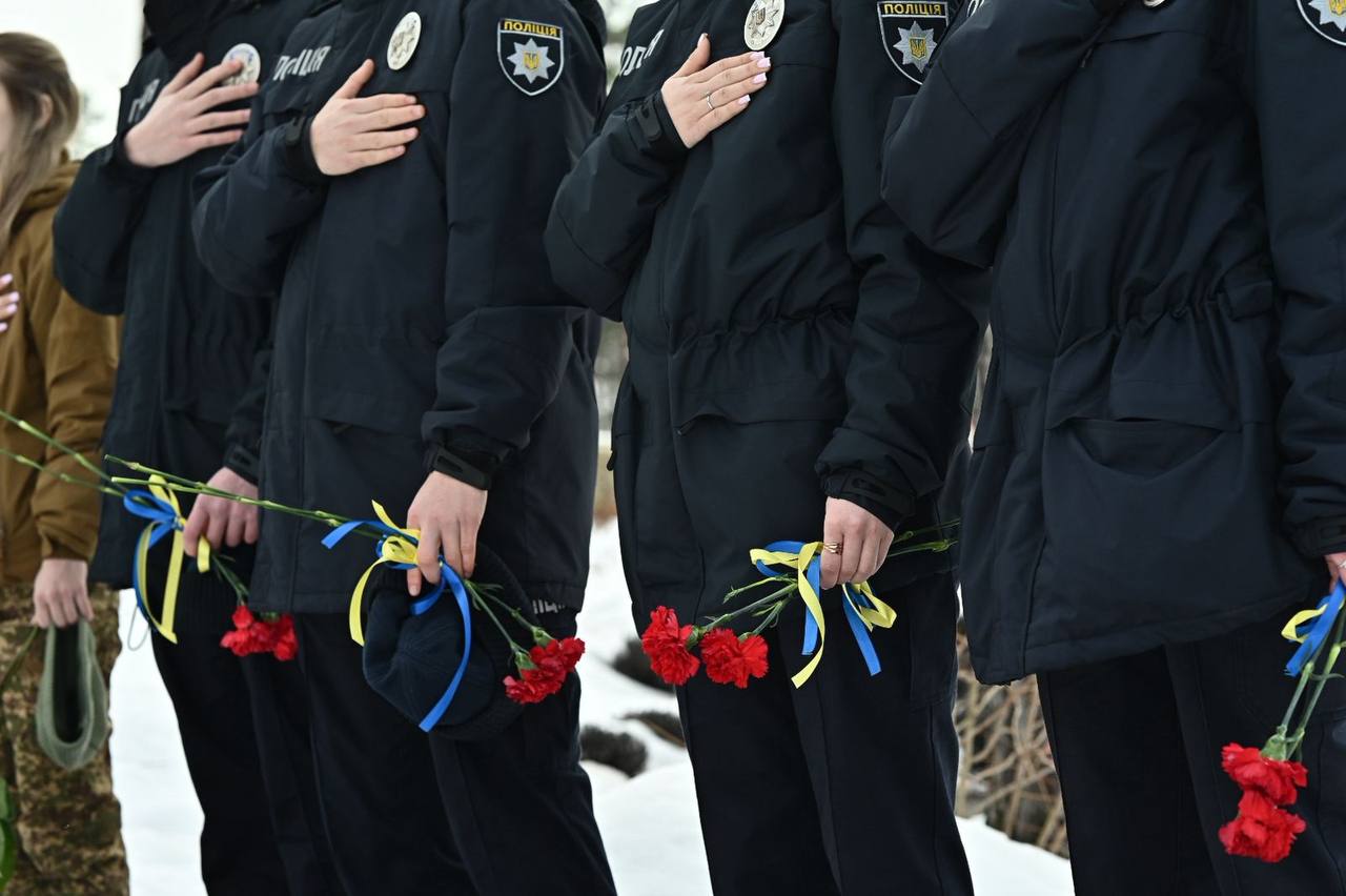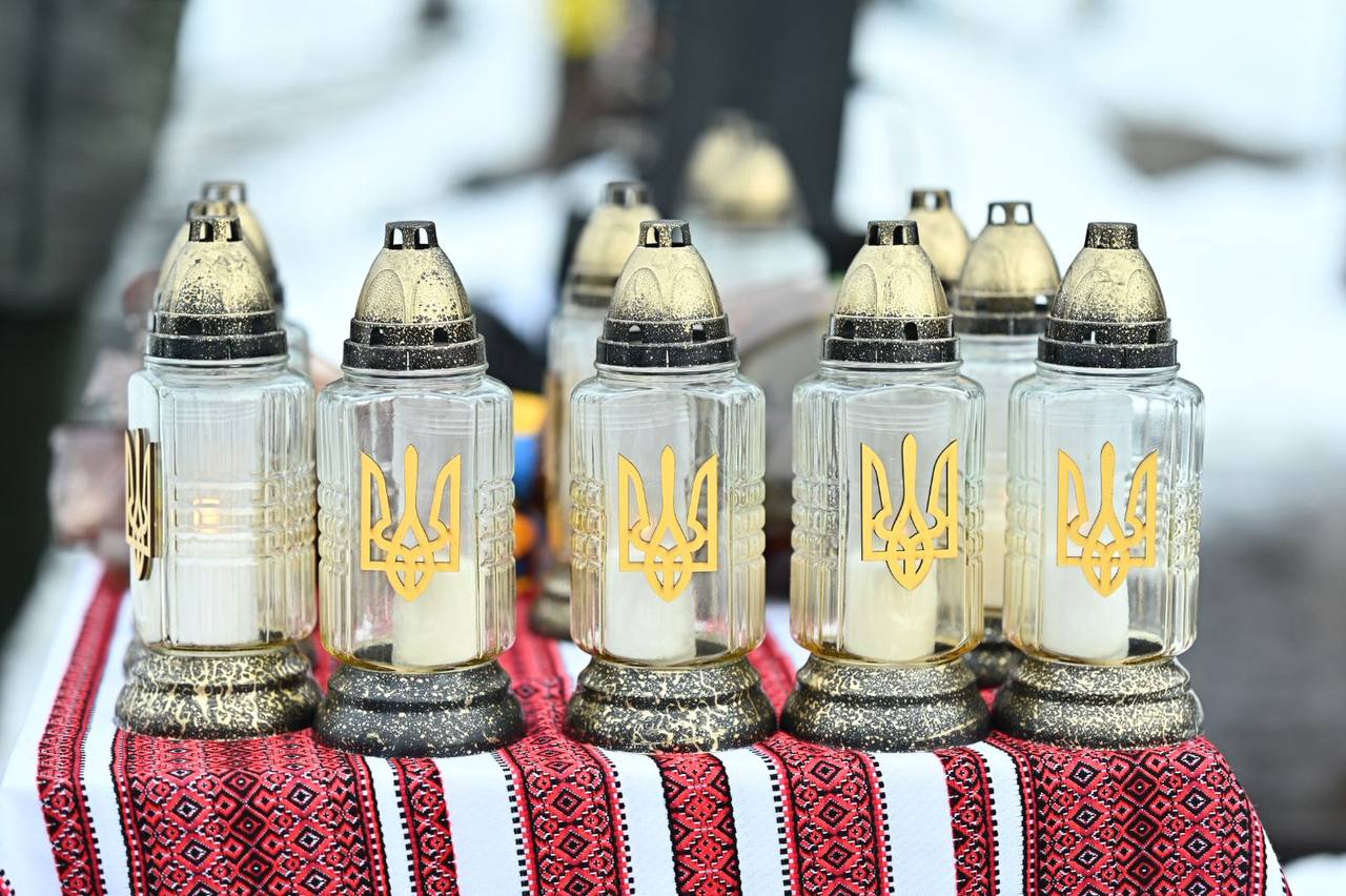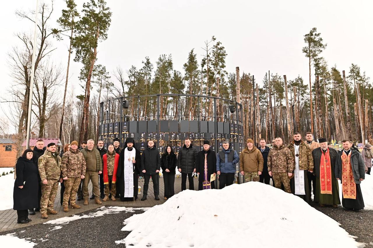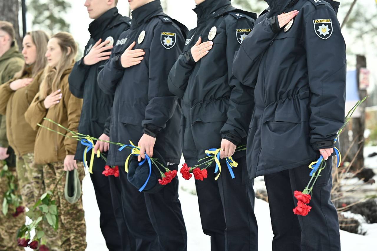 У селі Мощун курсанти Національної академії внутрішніх справ разом із головою Київської обласної державної адміністрації взяли участь у церемонії покладання квітів і встановлення лампадок, а також у спільній молитві за участю військових капеланів.