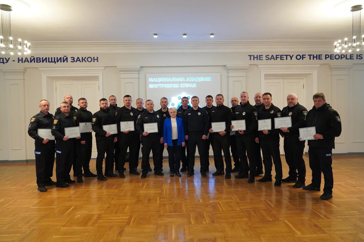 Вручав сертифікати проректор полковник поліції Станіслав Мозоль, який привітав учасників із завершенням навчання та побажав їм успіхів у подальшій службі.