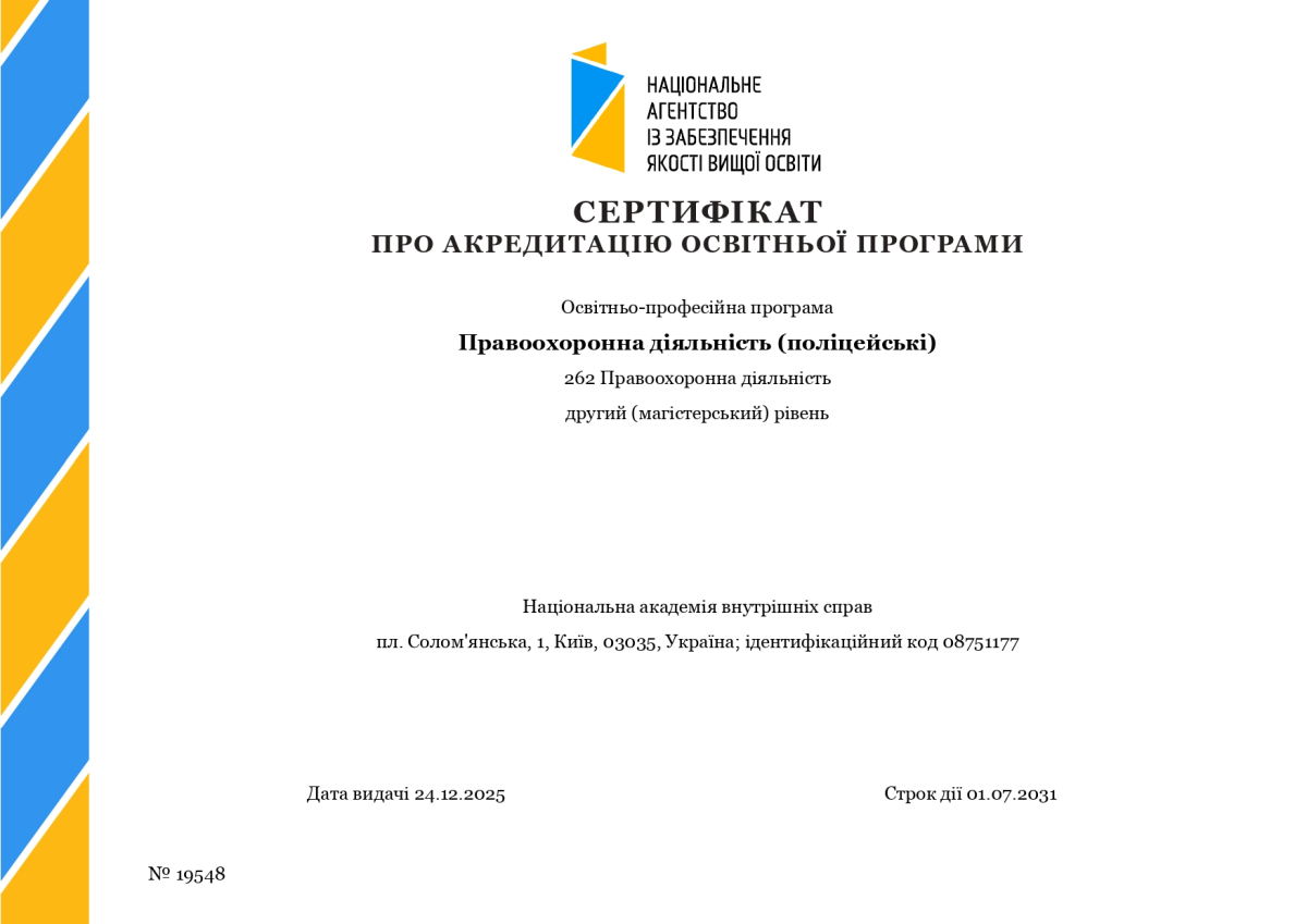 - 262 Правоохоронна діяльність I (бакалаврський) рівень