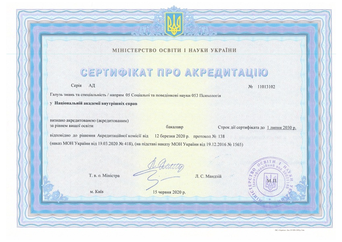 - 053 Психологія (поліцейські) ІІ (магістерський) рівень
